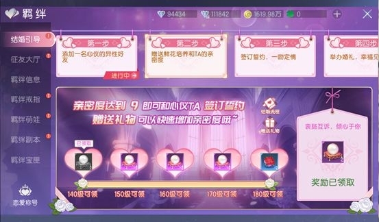 誓約條件:1.雙方為異性且等級(jí)達(dá)到180級(jí)