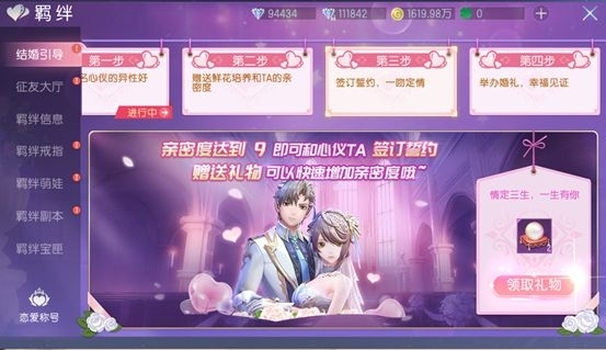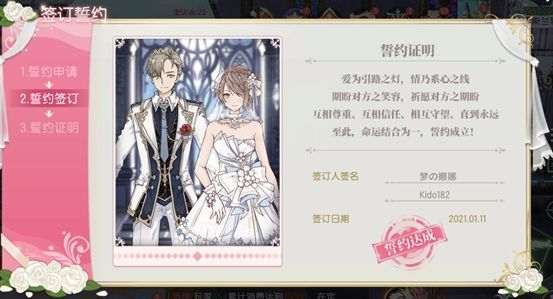 角色達(dá)到180級(jí)可以開啟誓約簽訂,親密度達(dá)到9 即可和心儀對(duì)象簽訂誓約,舉辦婚禮。
