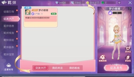 暫時(shí)沒(méi)有異性好友的朋友,也可以到征友大廳征集好友哦~