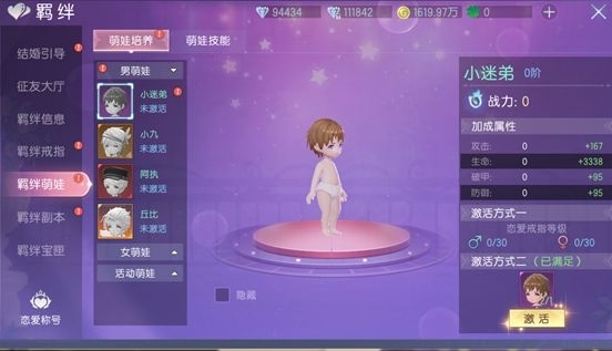 2.使用愛(ài)情結(jié)晶對(duì)萌娃進(jìn)行提升,提升萌娃獲得可觀的屬性