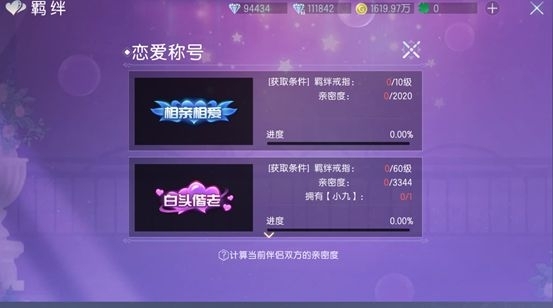 根據(jù)伴侶雙方的親密度,可以獲得不同的稱號(hào)