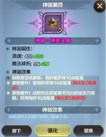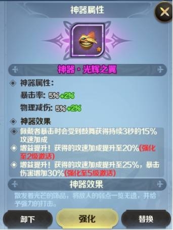 神器升星后可以獲得更加強力的神器技能