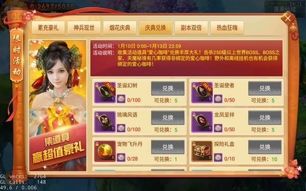 活動說明:收集活動道具“愛心咖啡”兌換豐厚大禮!擊殺世界首領、首領之家、天魔秘境有幾率獲得非綁定的愛心咖啡!野外和離線掛機也有機會獲得綁定的愛心咖啡!