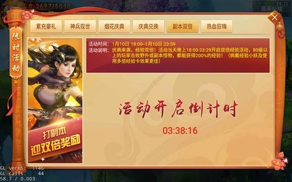 活動說明:活動期間內,第一天經驗翻倍,第二、三天特定副本雙倍掉落,道具獎勵超爽翻倍!
