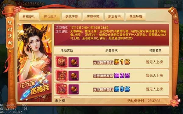 感恩慶典活動限時開放,1月10日-1月13日開啟感恩慶典活動,活動期間每日登陸均有好禮相送,累計充值更有額外大禮,副本雙倍掉落限時開啟,快速沖級就是這么簡單。慶典煙花,幸運豪禮爆爆爆?。ㄐ路字茉O有豐富的開服活動,暫不開啟該活動)