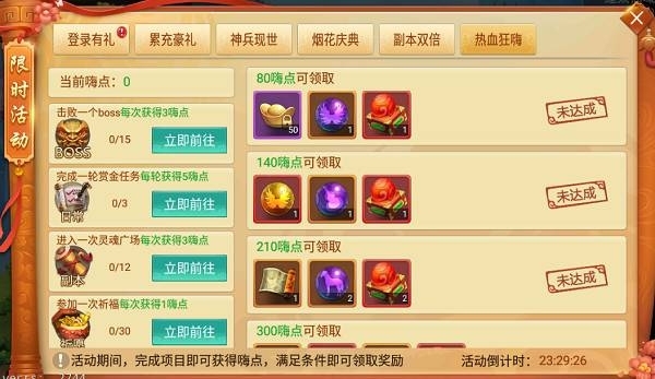 活動(dòng)說(shuō)明:活動(dòng)期間,完成項(xiàng)目即可獲得嗨點(diǎn),滿足嗨點(diǎn)條件即可領(lǐng)取超值獎(jiǎng)勵(lì)!