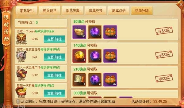 活動說明:活動期間,完成項目即可獲得嗨點,滿足嗨點條件即可領取超值獎勵!